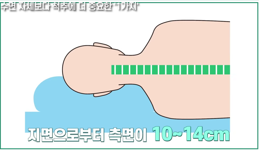 요약: 똑바로 누워 잘 때는 후두부가 지면에서 6~8cm 높이를 유지해야 경추의 C자 곡선을 자연스럽게 지킬 수 있습니다.
