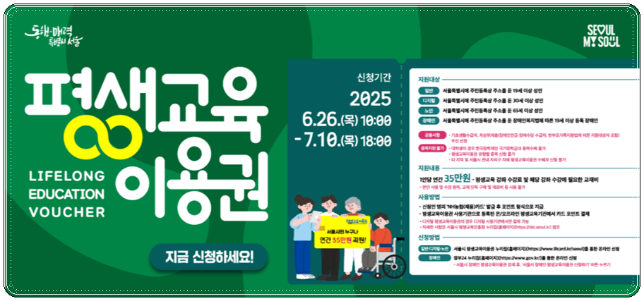 - 서울시 평생교육이용권 누리집 접속: 서울특별시 - 평생교육이용권