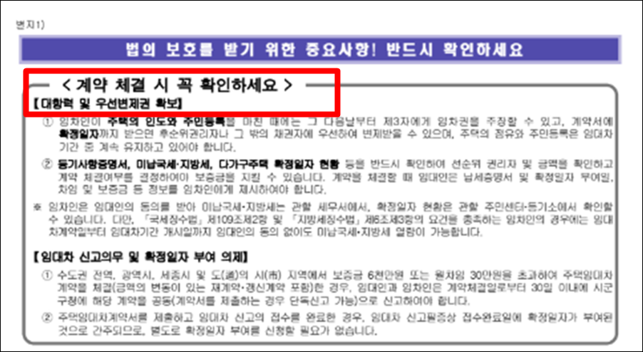 요약: 전입세대 열람원과 확정일자 부여 현황을 발급받아 확인설명서 9항의 기재 내용과 반드시 대조하십시오.