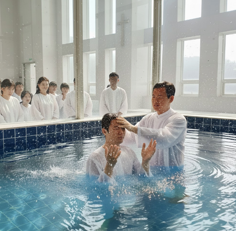 주님께서는 요단강에서 직접 침례를 받으시며 우리에게 순종의 본을 보이셨고, 모든 신자에게 이 의식을 거행할 것을 명령하셨습니다. 침례는 단순히 물을 적시는 행위가 아니라, 내가 주님과 연합하여 옛 자아를 물 무덤 속에 영원히 장사 지냈음을 하나님과 세상 앞에 공식적으로 알리는 강력한 선포식입니다.