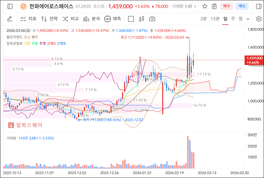 수출 계약 발표 직후 급등한 주가는 일시적 조정을 거칠 가능성이 높습니다. 3-5% 조정 시점을 매수 기회로 활용하되, 손절가는 -7% 이내로 설정하는 것이 안전합니다. LIG넥스원의 경우 52주 최고가 대비 아직 20% 여력이 남아있어 추가 상승 가능성이 있습니다.