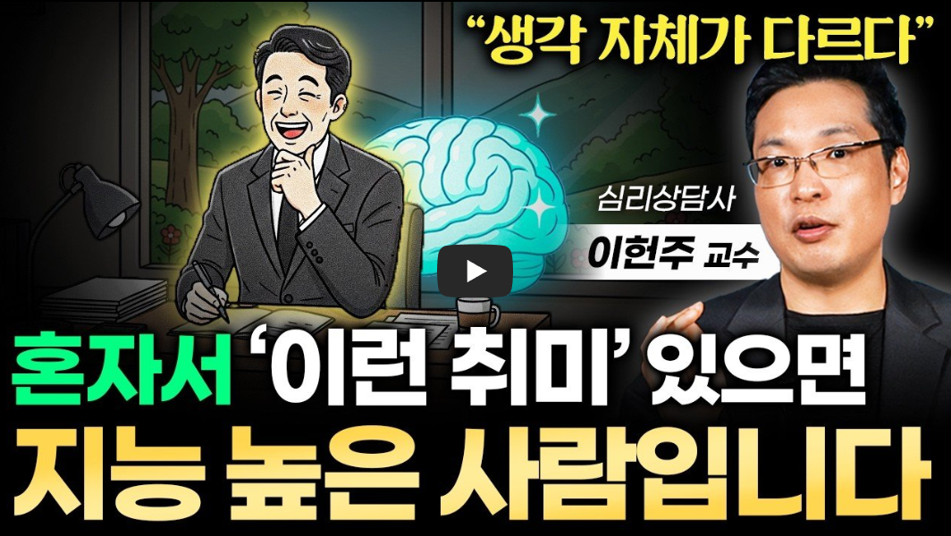 많은 사람이 혼자를 '외로움'으로 치부하지만, 연구에 따르면 지능이 높을수록 혼자만의 시간을 잘 활용하며 그 안에서 안식을 찾습니다. 아인슈타인의 산책이나 스티븐 킹의 '닫힌 문' 뒤에서의 3시간처럼, 위대한 성취는 모두 고독 속에서의 깊은 사유를 통해 탄생했습니다.