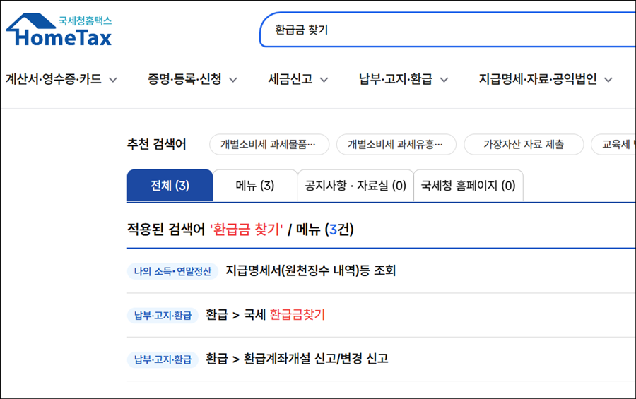 1) 국세환급금 (국세청)