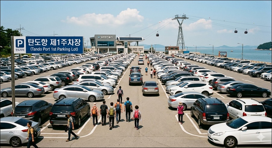 탄도항 케이블카 주차장은 평일에는 여유롭지만 주말에는 오전 9시부터 차량이 몰리기 시작합니다. 가장 여유로운 시간은 오전 8시 30분 이전 또는 오후 4시 이후입니다. 주차장은 제1주차장(200대)과 제2주차장(150대)으로 나뉘며, 제2주차장이 케이블카 탑승장과 더 가깝습니다.