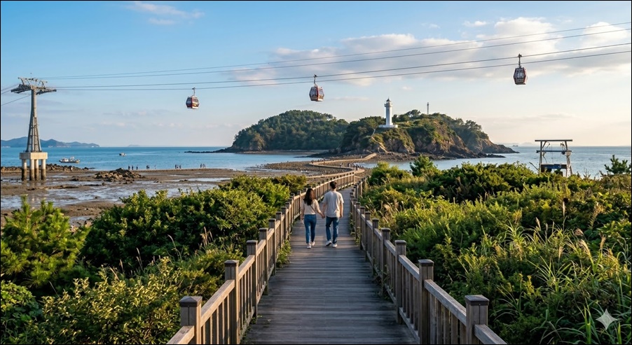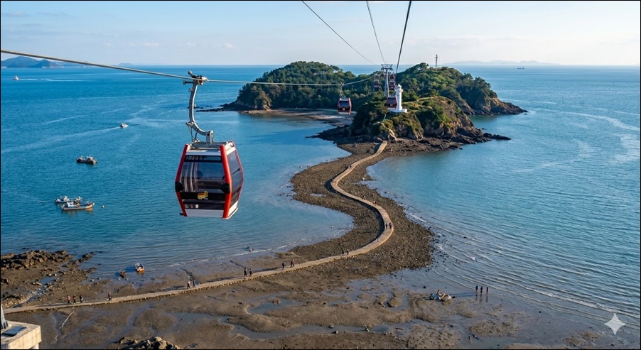 요약: 케이블카-구봉도 전망대-갯벌체험-유리섬 박물관 코스로 하루 완성 여행 가능합니다.
