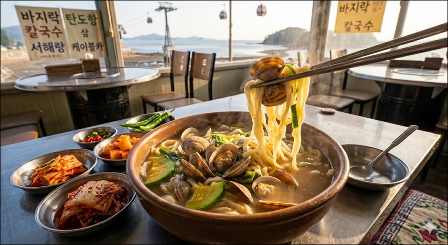 케이블카 탑승 후에는 구봉도 전망대에서 서해 낙조를 감상하세요. 하산 후 도보 5분 거리의 탄도 바닷가에서 갯벌체험이 가능하며, 주말에는 해산물 직판장에서 신선한 대하와 조개구이를 저렴하게 즐길 수 있습니다.