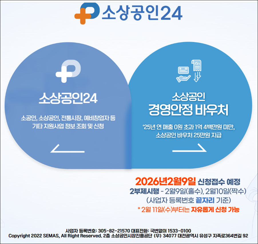 소상공인 경영안정바우처는 연 2회 정기 신청기간을 운영하며, 2026년 1차 신청은 3월 중 시작될 예정입니다. 신청 시작일로부터 약 2주간 접수를 받으며, 예산 소진 시 조기 마감될 수 있어 초반에 신청하는 것이 유리합니다. 정확한 일정은 소상공인시장진흥공단 홈페이지에서 2월 말경 공지되므로 미리 알림 설정을 해두는 것을 추천합니다.