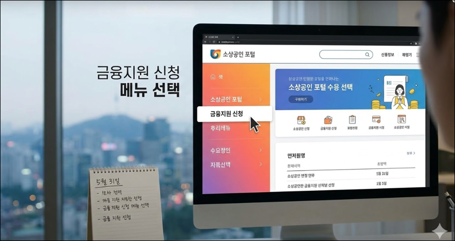 2단계: 금융지원 신청 메뉴 선택
