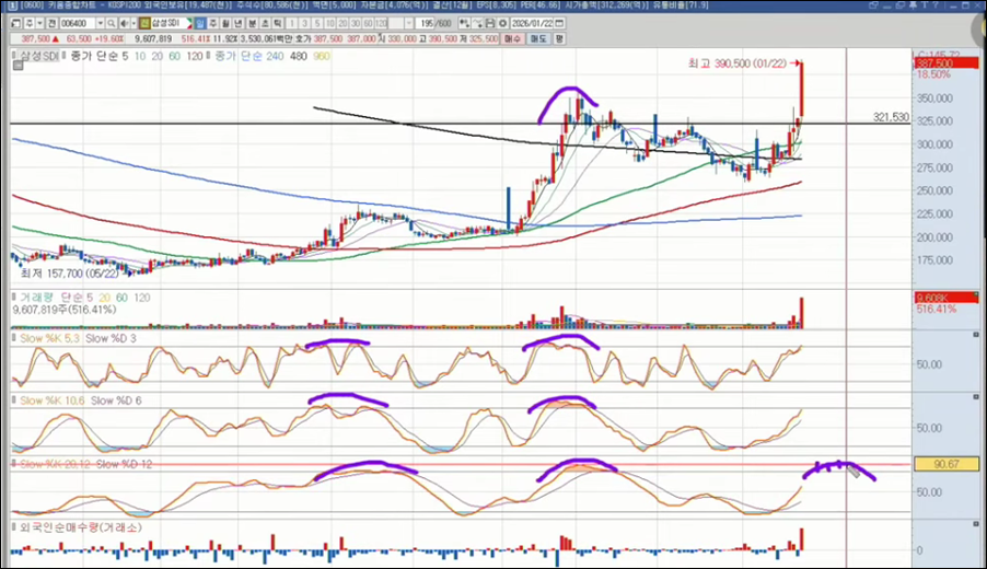 외국인과 기관의 최근 3개월 매수세가 지속되는지 확인하고, 이동평균선이 정배열을 이루며 지지선을 형성하는 종목을 선택합니다. 거래량이 평소보다 20% 이상 증가하는 시점이 진입 타이밍입니다.