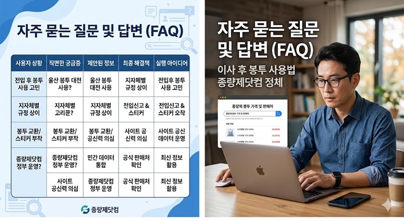 Q1. 종량제닷컴은 정부에서 운영하는 공식 사이트인가요? A1. 각 지자체의 공공 데이터를 통합하여 판매처 정보를 제공하는 민간 조회 서비스입니다.