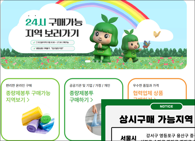 종량제닷컴 서울 경기 지역별 봉투 가격 안내