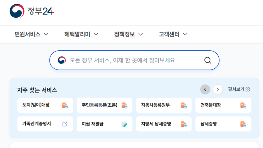 1단계: 정부 24 또는 복지로 접속
